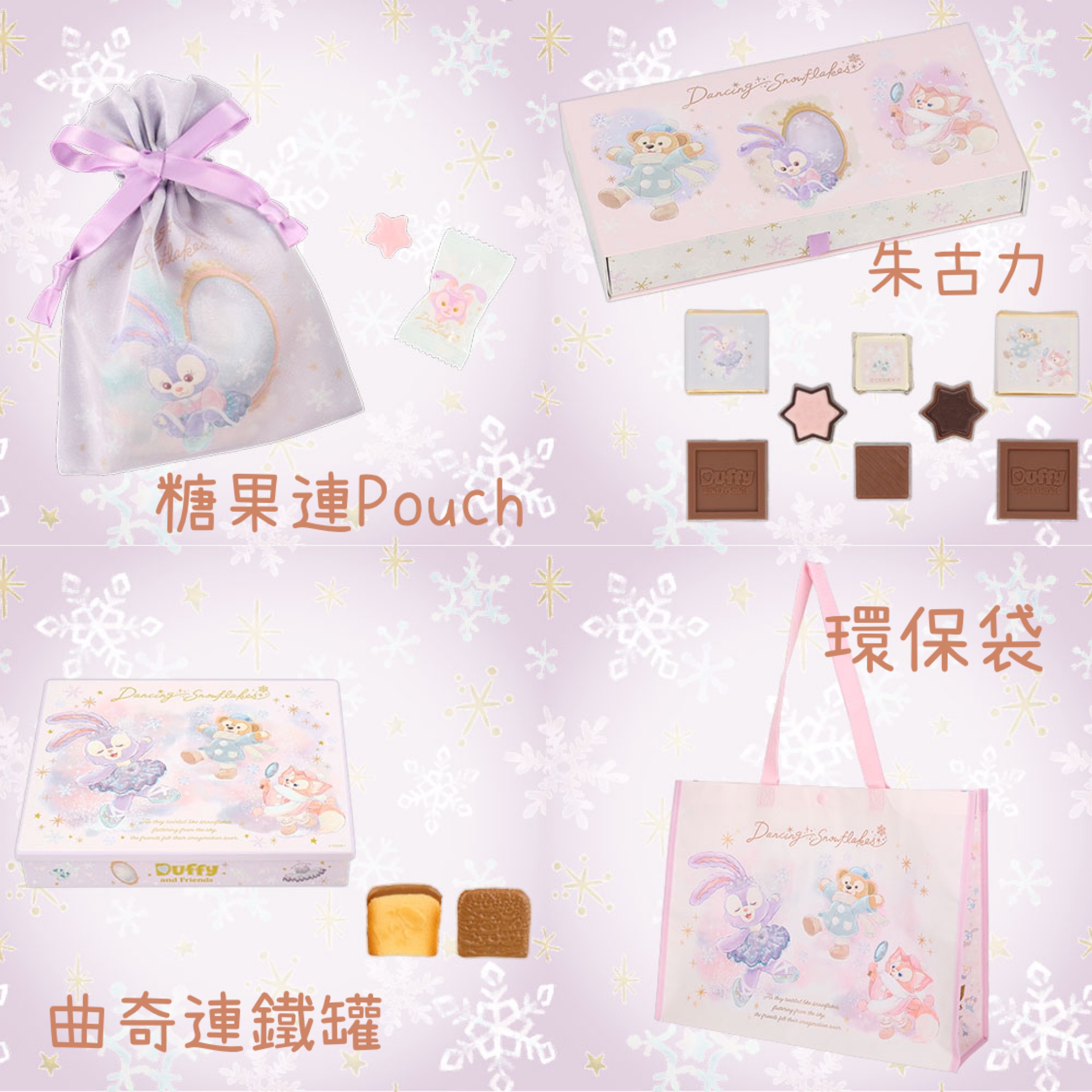 🇯🇵東京迪士尼 Dancing Snowflakes 聖誕節系列 Duffy & Friend 糖果連Pouch 朱古力 曲奇連鐵罐 環保袋